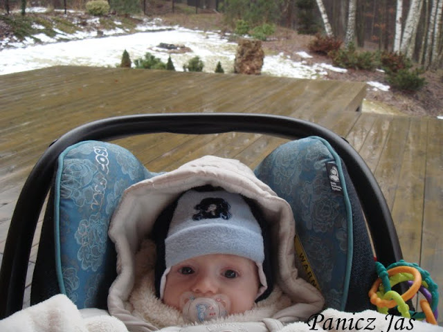 Zainteresowany był średnio - chyba dlatego że ziąb był a Panicz został opatulony po czubek nosa.