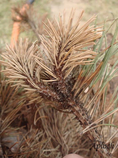Jak wycinałam te suche gałązki to przyrosty ubiegłoroczne zostawały mi w ręku, odłamywały się, były bardzo kruche. I te igły brązowiejące nie "po całości" ale postępująco... Mam wrażenie że jakaś choroba je dopadła. Poszukam jeszcze przyczyn. Nie mogę się pogodzić z myślą że kupa kasy tak po prostu "zmarzła" zimą :(