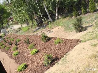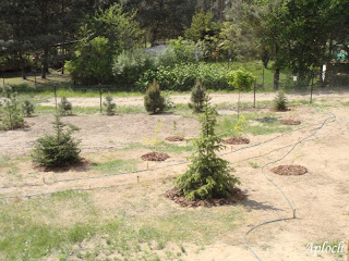 Cztery lata temu Mama posadziła na niej irgi. Miały dwa lata, trzeciej zimy wymarzły. Skasowałam je ostatecznie i rok temu posadziliśmy kosodrzewiny. Niestety, jesienią zaatakowało coś sosny i trzy z czterech kosodrzewin trzeba było wyrzucić tej wiosny.