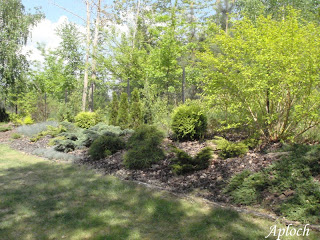 Rzut oka na skarpę - tu się nic nie zmienia od lat. No może tylko roślin mniej bo kilka sztuk wypadło, za to trzy tuje przybyły w ubiegłym roku.