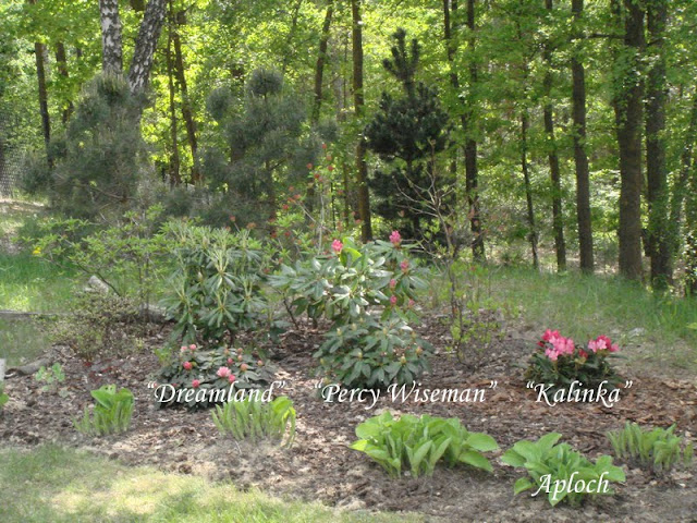 A poniżej również jakuszimański rododendron - rozwinął pierwsze kwiaty 15 maja.